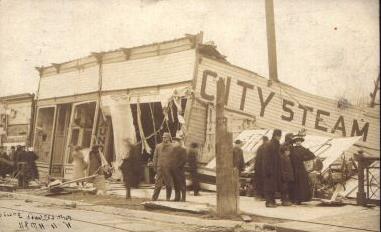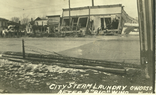 It then went northeast to destroy the City Steam Laundry building located at 328 -330 W. Main St. which was on the west side of the Shiawassee River at the Main St. bridge.