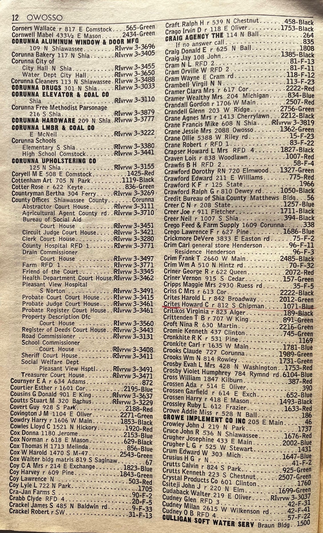 1928 Owosso City Directory including Corunna and other Shiawassee