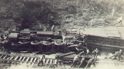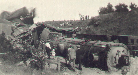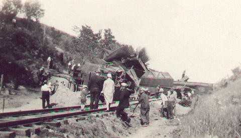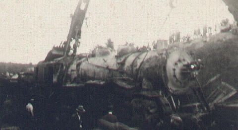 The following pictures were from the collection of Lester Lundie, formerly of Owosso, who worked for and retired from the Ann Arbor Railroad. The wreck of Ann Arbor Engine #185 occured in about 1928 near Pomona , a small station between Cadillac and Benzonia. Thanks to Lester's daughter, Lila Smalec, and her son Darren for submitting these pictures.