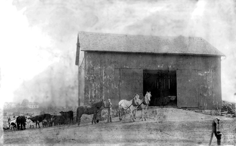 Building a barn was a neighborhood project in the early days. This picture was taken in 1896 and was at the William Briggeman farm at 3100 W. Wildermuth Rd. in Owosso Township. The barn was moved to 3222 W. Wildermuth Rd. in 1927.