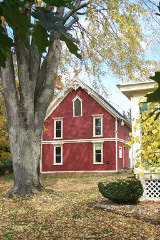 Built in 1890, this 2 1/2 story frame structure, with gabled ends and pointed windows, was designed to fit architecturally with the mansard-roofed house built shortly before as a wedding gift to John McCurdy from his father, the honorable Hugh M. McCurdy. It is located at 402 Corunna Ave. Corunna, MI.