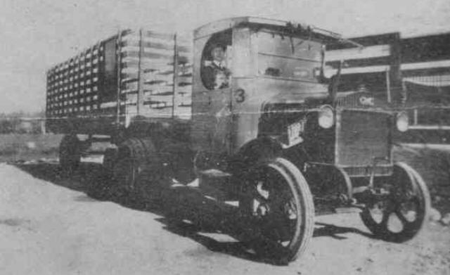 Gerald V. Mogg with a Lansing, Michigan built REO truck and trailer.