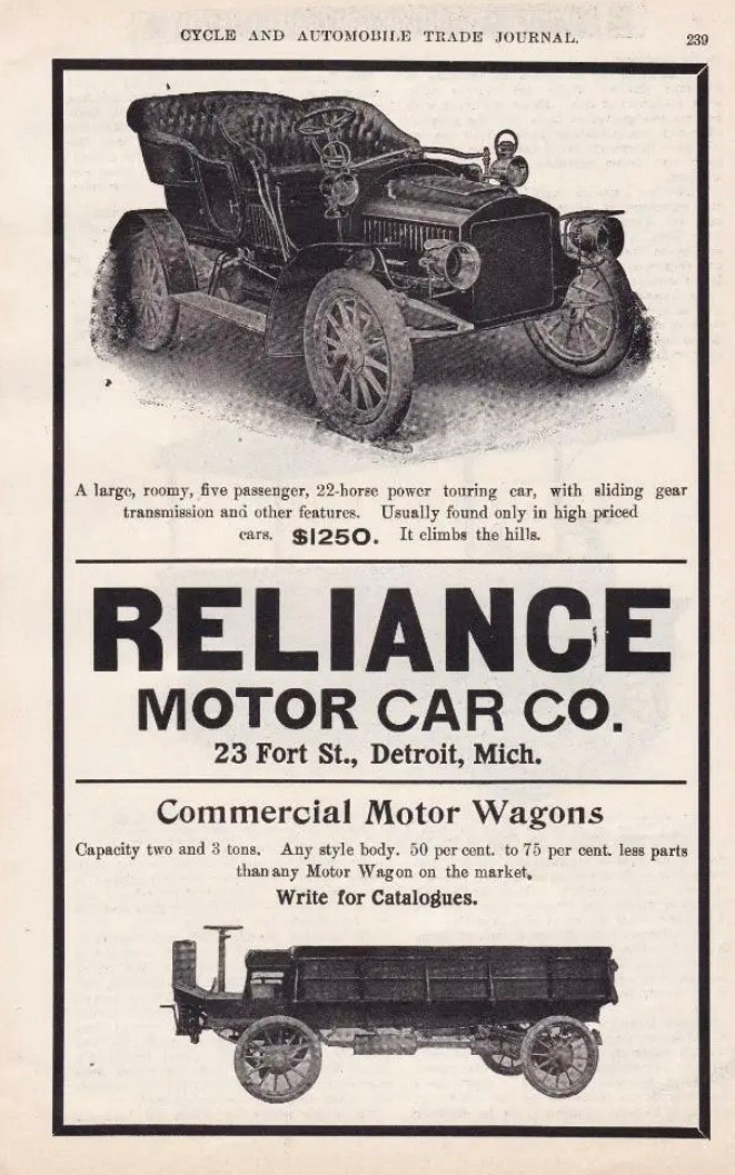 1912 A.L.A.M. advertisement that clearly shows the Reliance model.