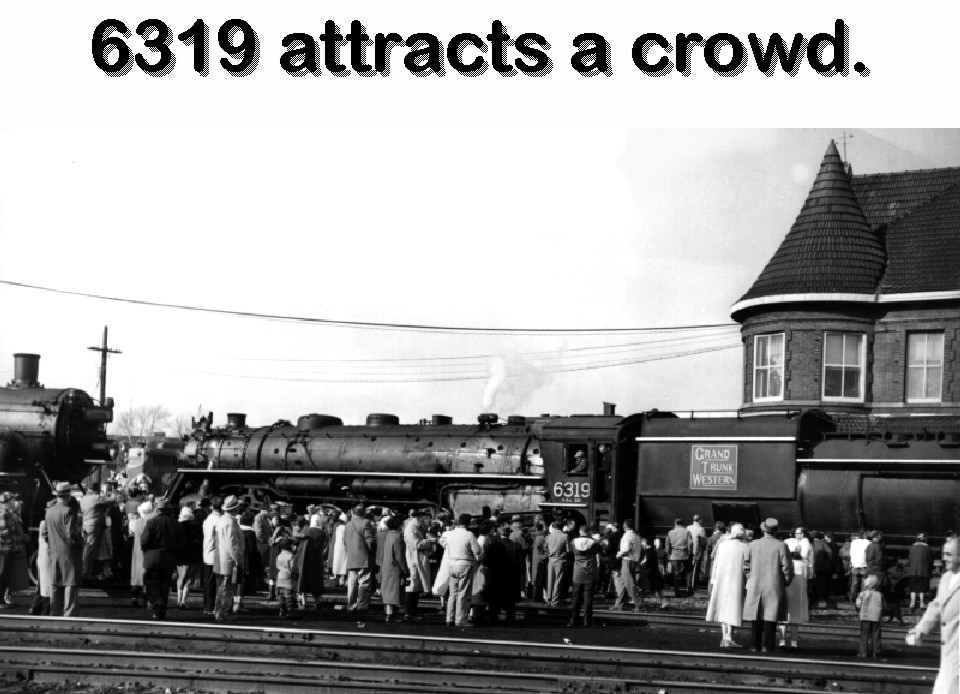 I rode in the cab of a GP from Durand to Detroit that morning to catch the last run back home. I was on the second section. My dad was in Durand taking the pictures of #6319 arriving with the first section, and then #6322 with the second section, then #6319 heading back to Detroit out of Durand while I got off the second section.
