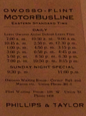 Born in March, 1884 in Owosso to Richard and Mary Phillips. Cora married Wayne Taylor and together founded in 1910 a jitney service in Owosso which later became Indian Trails Bus Lines.