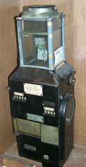 The photo above shows a 12 volt coin/token machine that was made by the Johnson Fare Box Co. and used in the Owosso-Flint Bus Line. And a fare token.