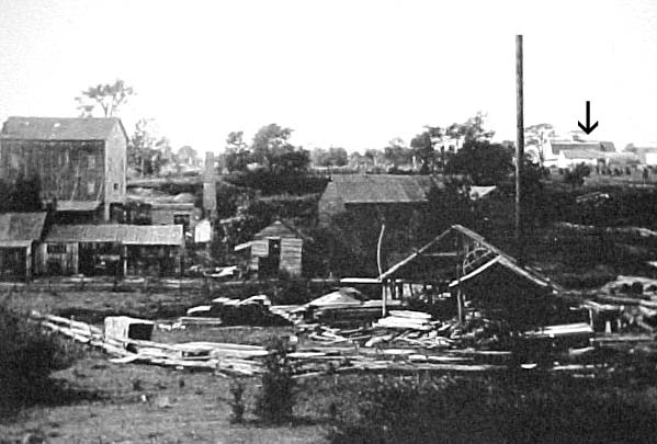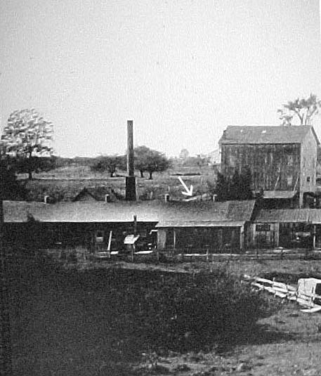The structure in the background, highlighted with an arrow, was the old grist mill located near the waterfall on what is now known as Quarton Lake.