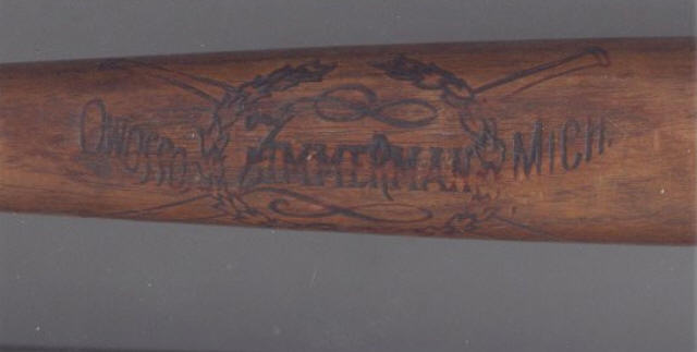 Zimmerman Manufacturing produced wood handles for rakes, shovels and other various home and farm hand implements. However, Mr. Zimmerman must have had a great interest in sports, as he began to produce baseball bats, souvenir bats, tennis rackets and pole vaults. The Detroit Tigers was one of their largest customers.