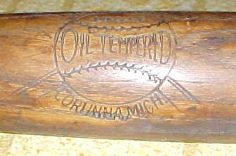 In 1930, he moved his business to Corunna and there manufactured handles and bats. Any Zimmerman bat marked "Corunna", would have been manufactured in 1930 or after. This plant closed in about 1937.