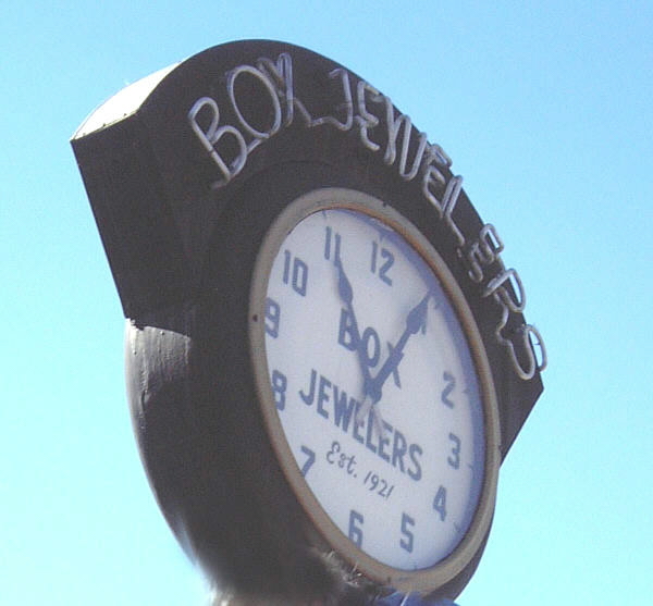 So far, we have not been able to determine when the clock went up, but it was when the business was still on the west side of Myrtle.