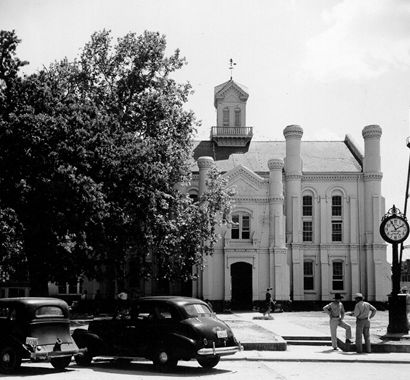 The Brown Street Clock stood in front of the Shelby County Court House in 1939.