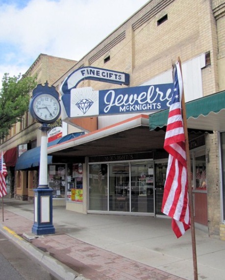 This Brown Street Clock has been restored and is located in front of McKnight's Jewelry store.