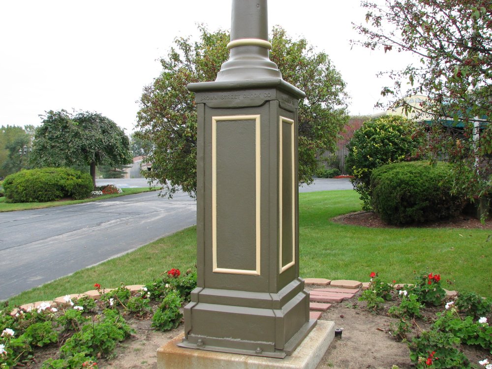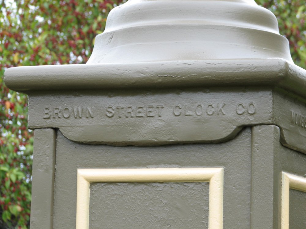Today this Brown Street Clock is owned by the Omega Center and was restored by Maximum LLC of Elkhart, Indiana in 2009.