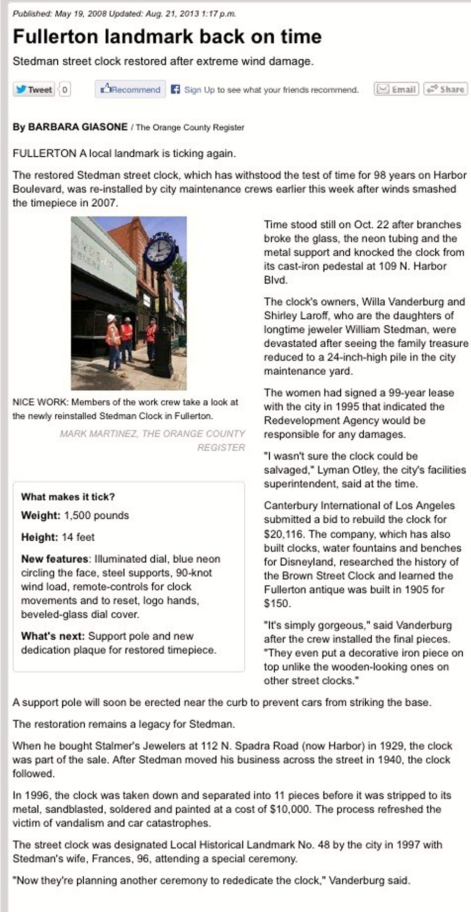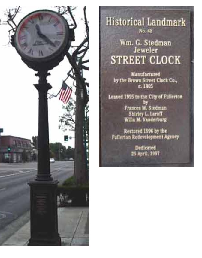 This Brown Street clock is located at 102 N.Harbor Blvd. today. It was originally located down the street at 109 N. Harbor Blvd. and was installed in about 1910 by Stalmer's Jewelers.