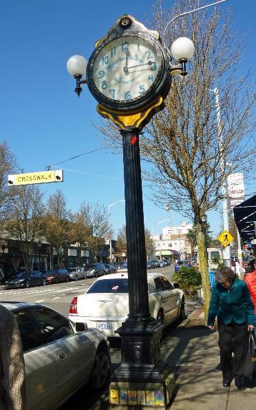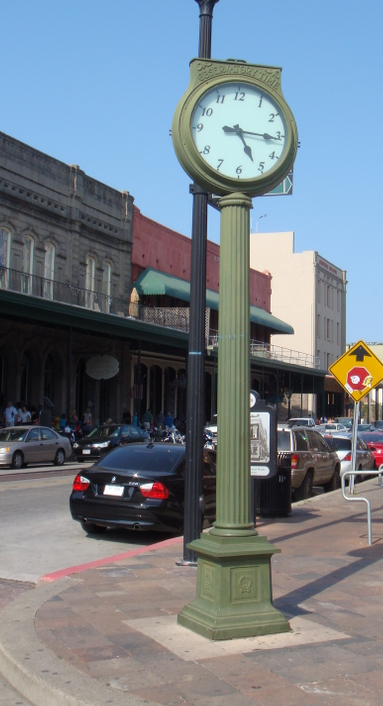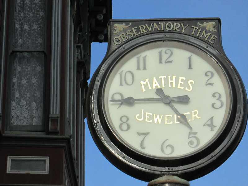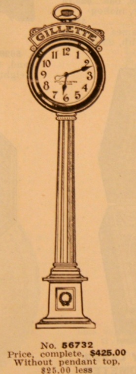 The clock was 14 feet tall, the lighted dial measured 30 inches in diameter and was adorned with 3 street lamp-type lights. Due to the lighting, the clock was quite eye catching at night. The hands were driven and controlled via wires from a master clock works inside the store.