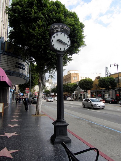 During the silent movie era, the Stromberg clock was often captured on film during car chases. The clock and the store interior were featured prominently in the movie The Grifters in 1990."