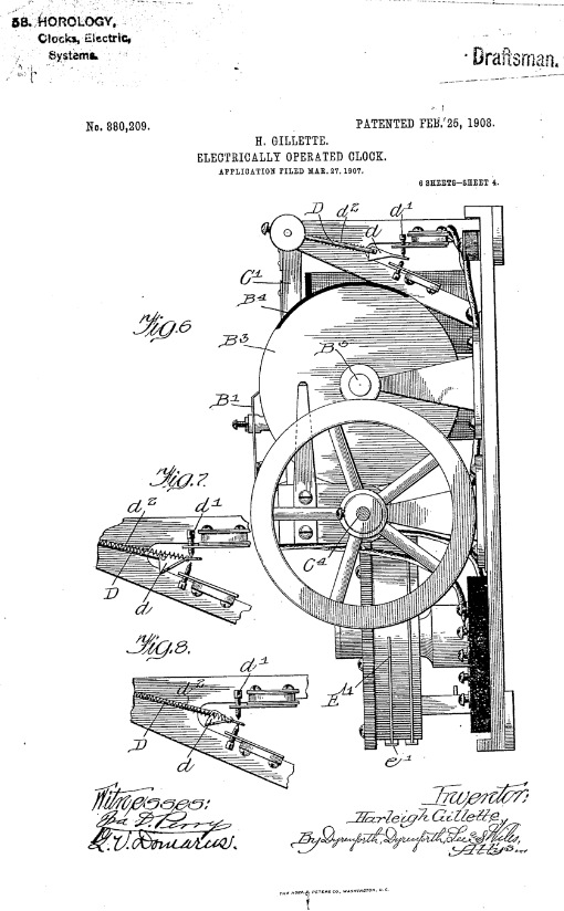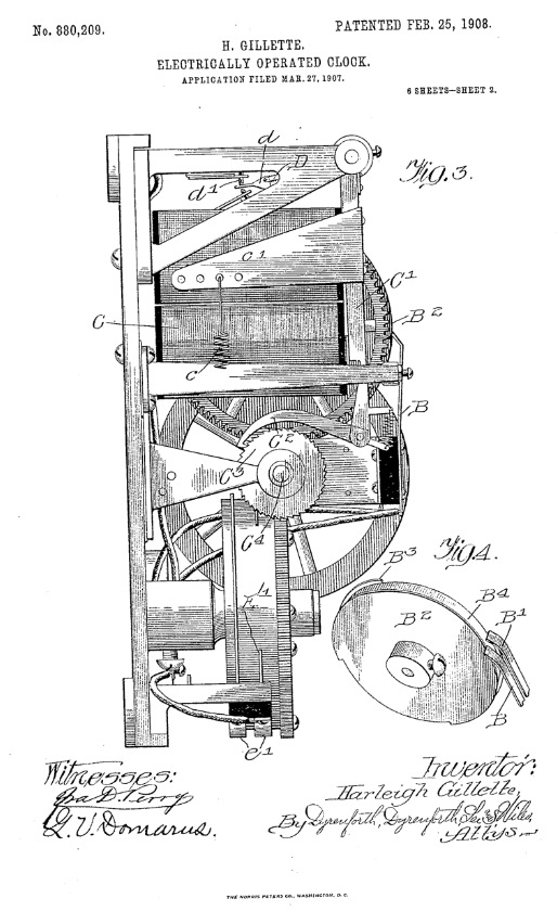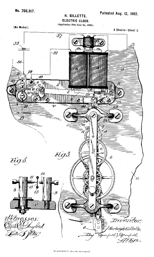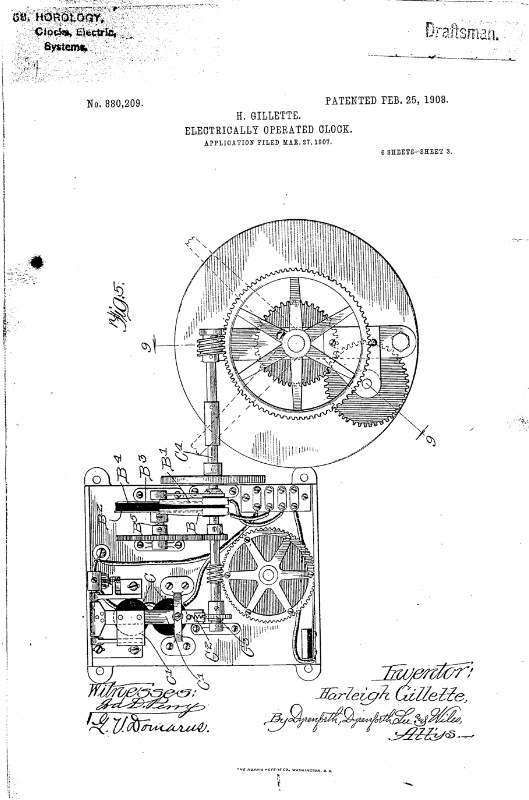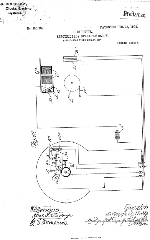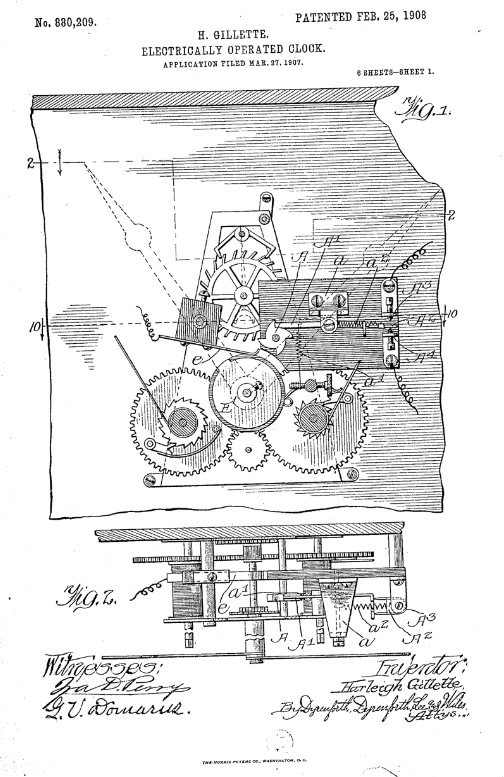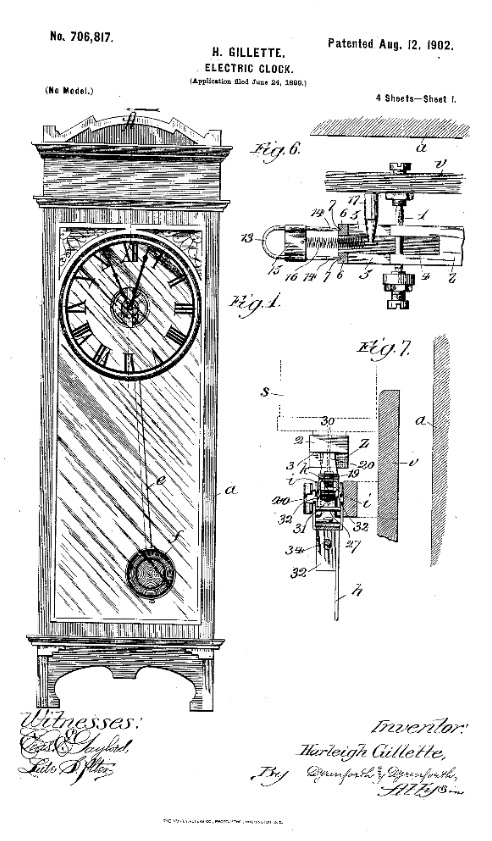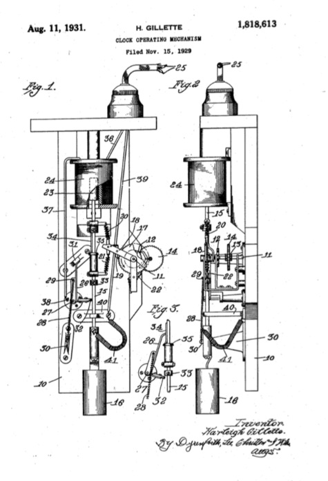 Gillette street clocks were actually slave clocks because they were powered by impluses provided by a master clock that was located inside the building. It is believed that these master clocks were manufactured by either Gillette or by clock companies like the Standard Electric Time Company or the Waterbury Clock Company.