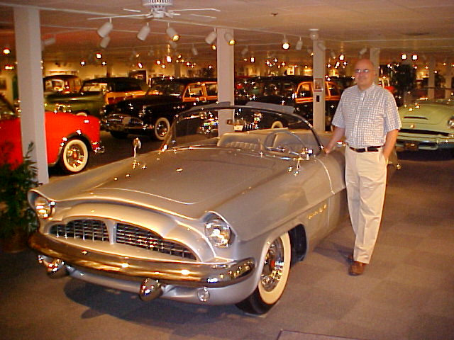 While it has been repeatedly claimed that the Dodge Granada was the "first one piece fiberglass body that could be mounted on a conventional chassis" this can only be true if one ignores the fact that the Packard Panthers were also identical constructi... made at the same time by the same companies. I also notice now that the wheels have been changed on the car today (they look similar to the originals, but they are not and sit with a wider trac... and the outside rearview mirror (which was prominent and considered novel in the 1950s for being built-in) has been completely removed. I have photos during and just after original construction.