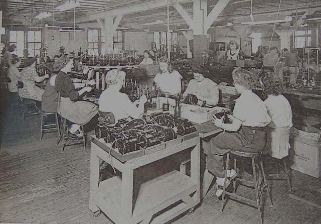 Below, factories like Redmond Motors of Owosso, hired many women to replace the men who were drafted into service during WWII. Photo taken in 1942.